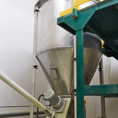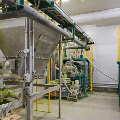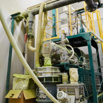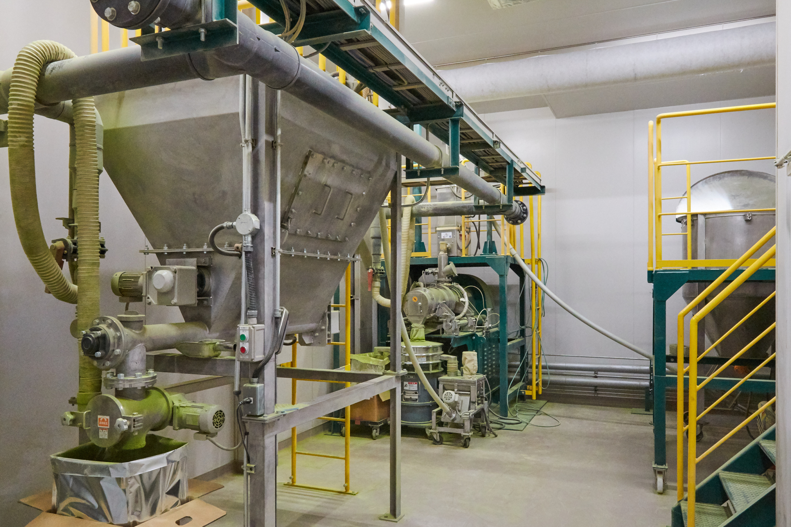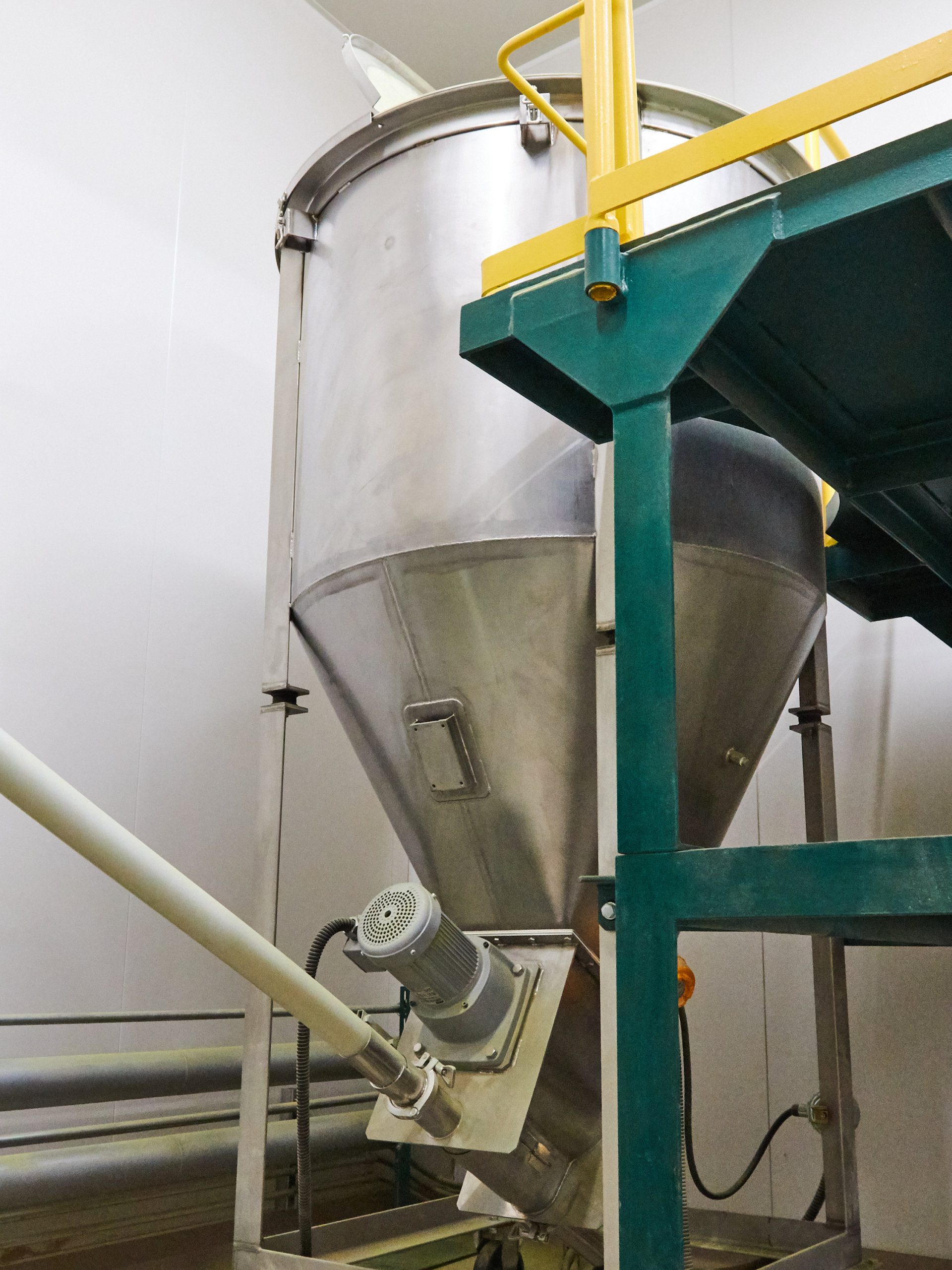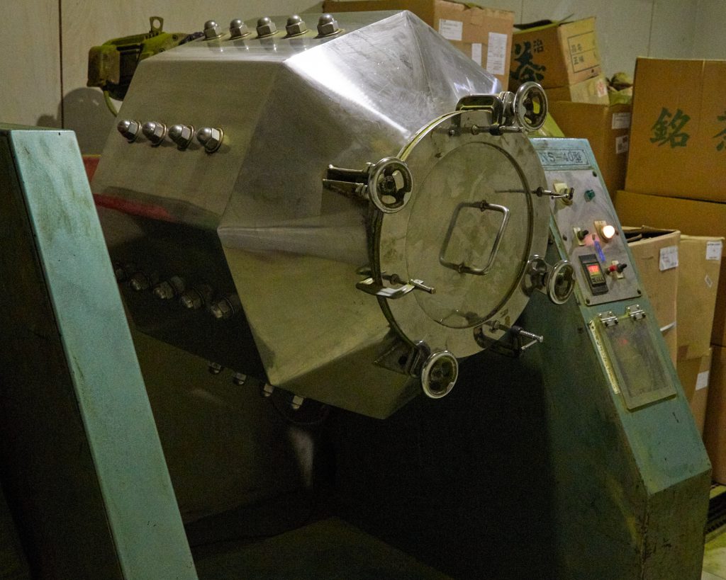 顆粒の商品を加工する機材。左からミキシング・造立加工機・乾燥機 。(4層のふるいを導入予定)