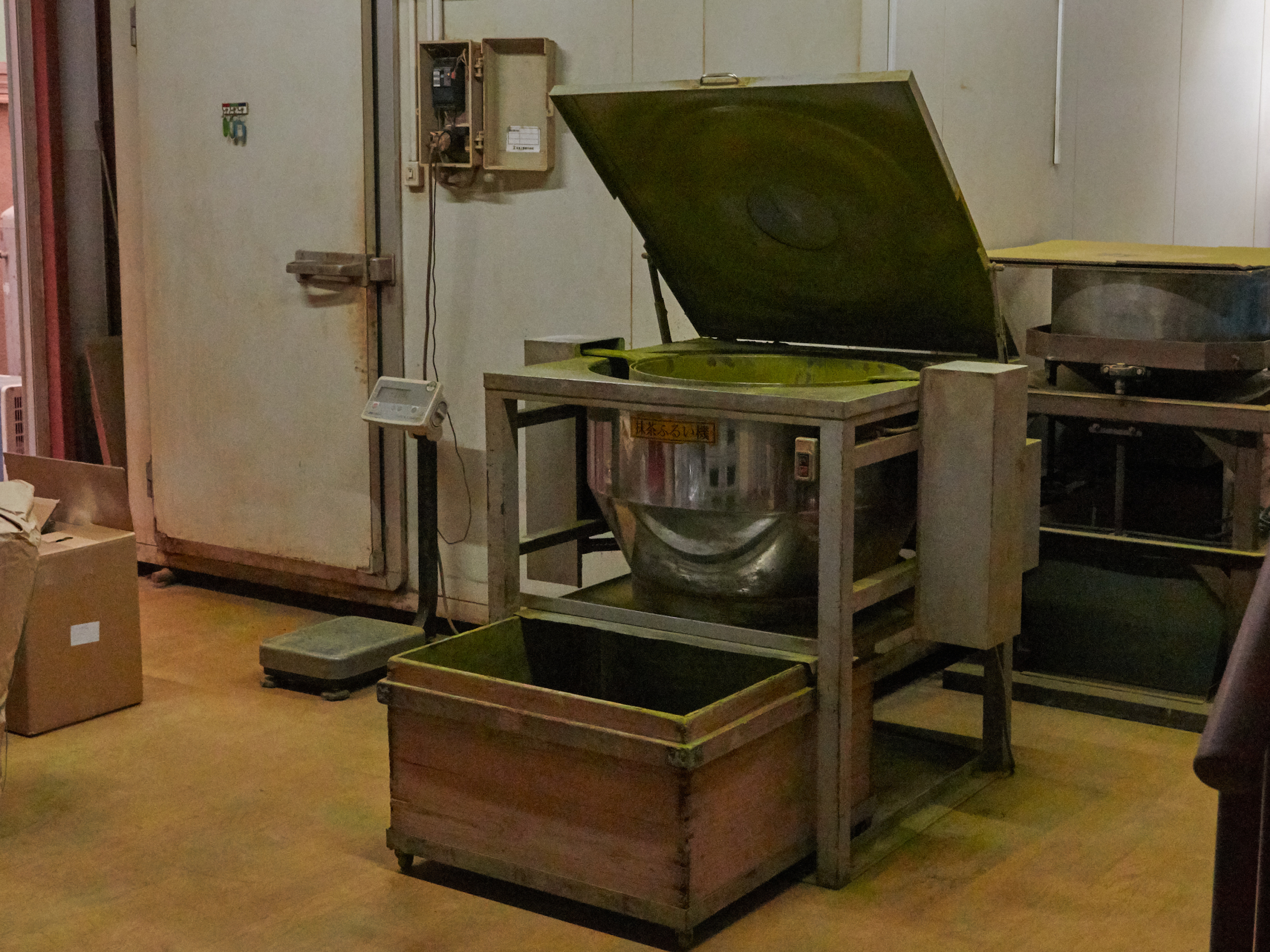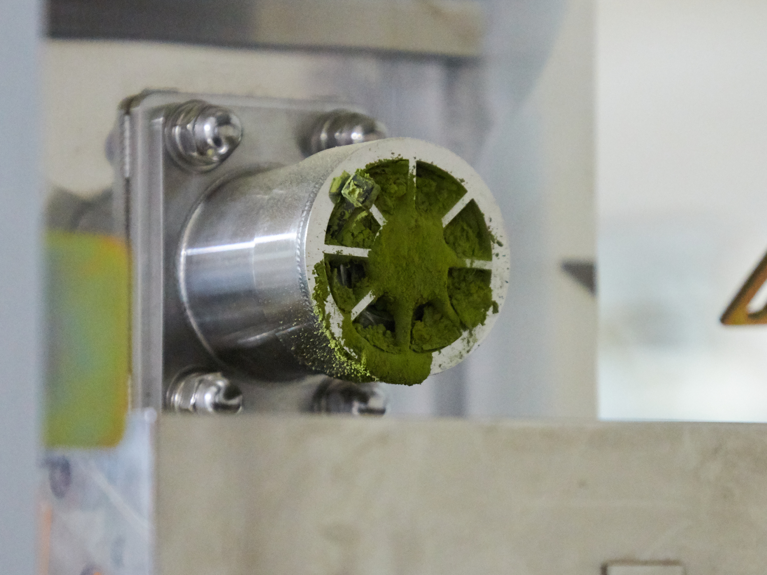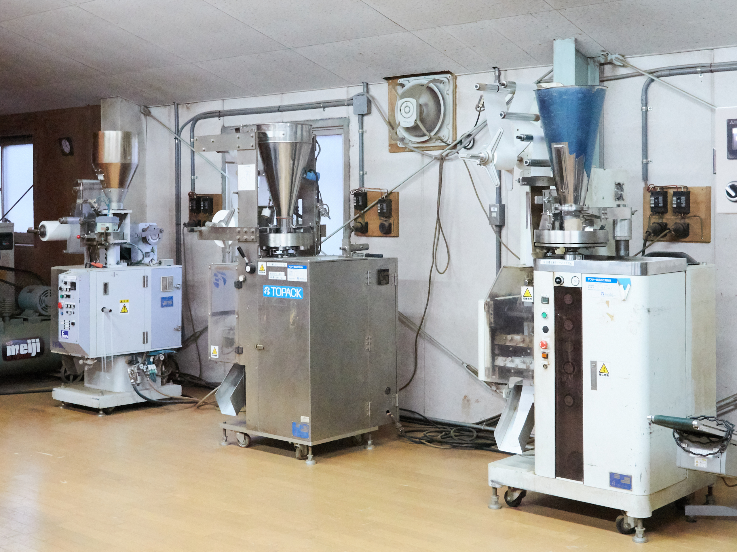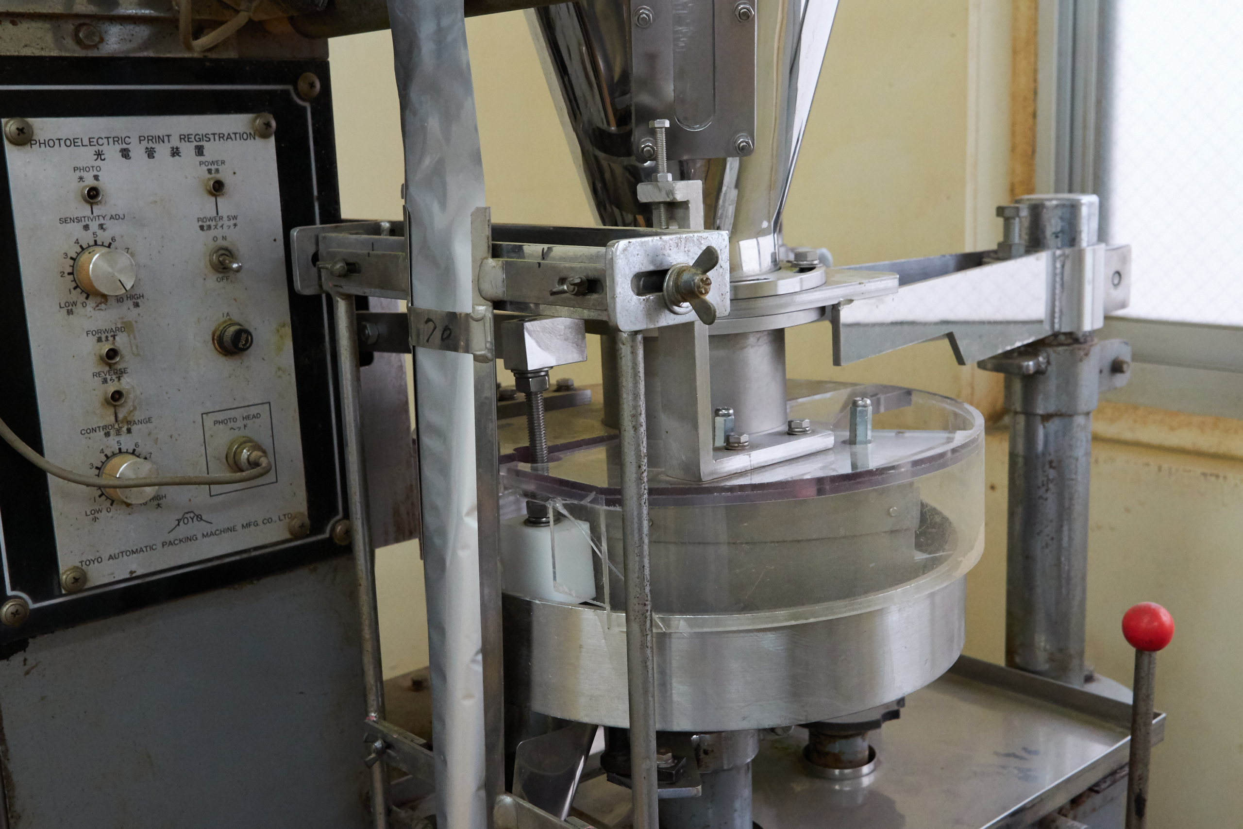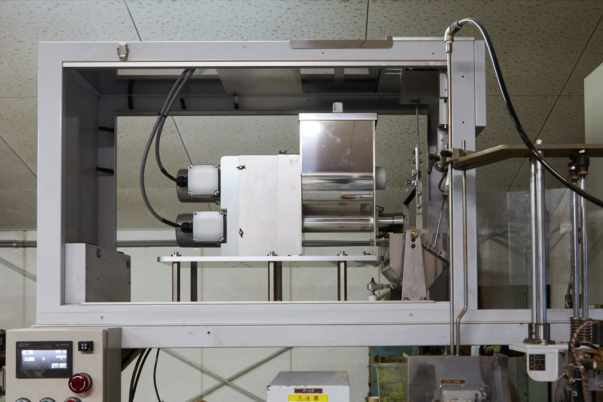 シュガー用の機械を藤二が独自改良し、たたきと飛散防止機能をつけています。これにより静電気による分量誤差が生じるのを防止し、正確な分量での製品加工が可能になります。
