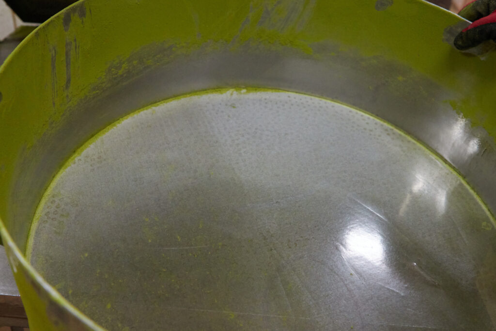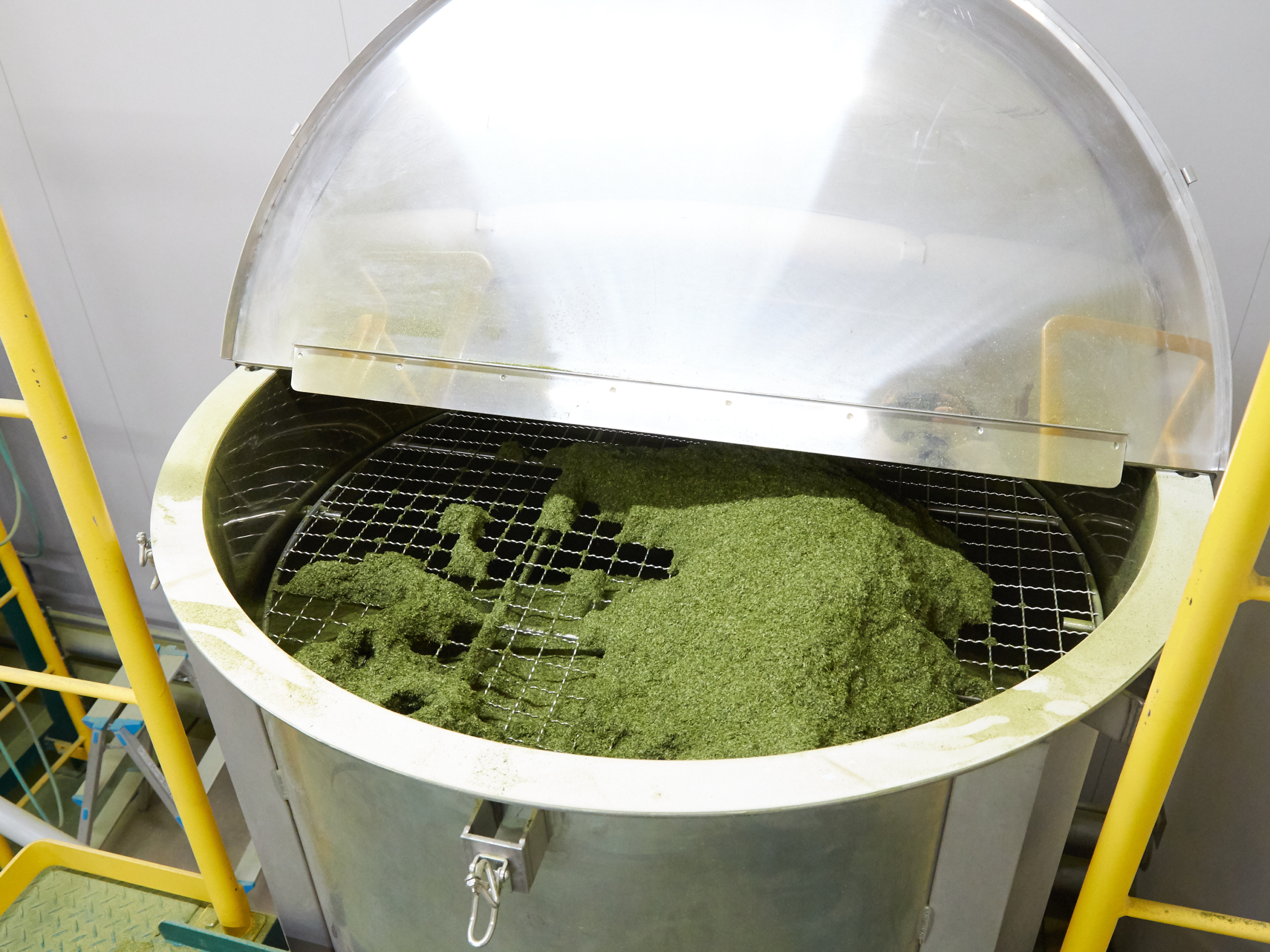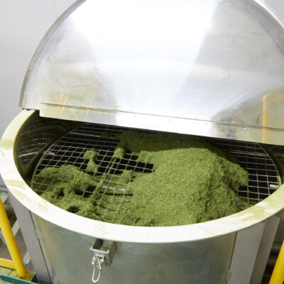 お茶は温度によって色や鮮度に違いが出ます。(他工場は160〜170℃で乾燥している。浅め)